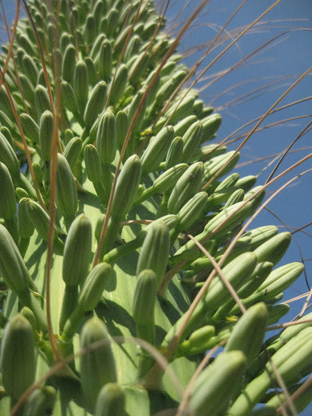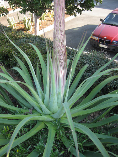 When an agave flowers, it is not a happy event, unless you've been waiting forever to collect its offspring.
